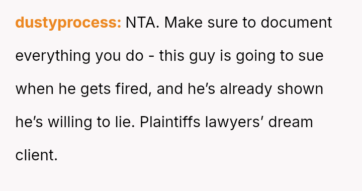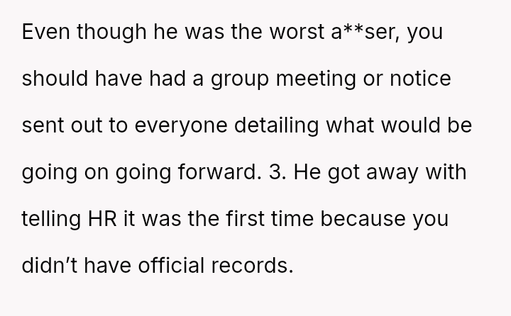 When the manager finally addresses the issue with clear expectations, the response is not remorse but deception and deflection.