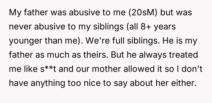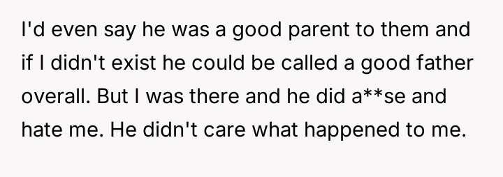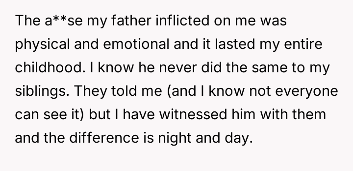 He carries the weight of a childhood marred by cruelty, a relentless storm of a**se that his siblings never had to face.