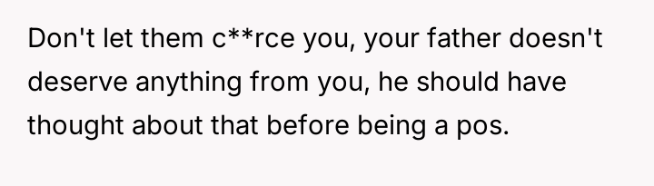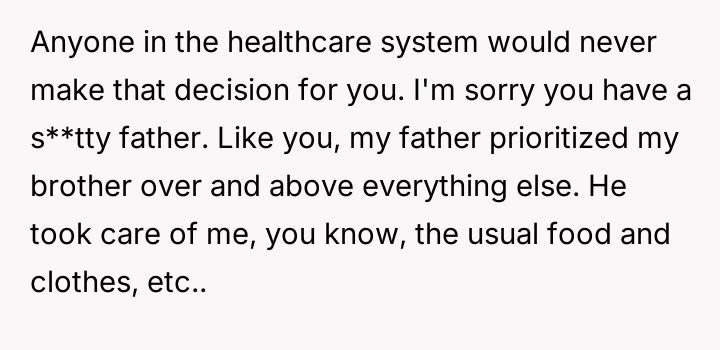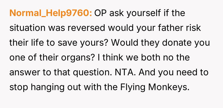 The original poster (OP) faces a profound ethical dilemma rooted in past trauma: whether to potentially save the life of an abusive father by donating an organ, primarily to ease the emotional burden on their younger, non-a**sed siblings.