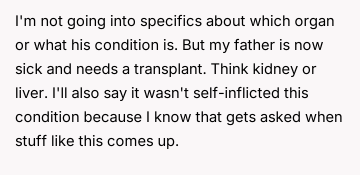 AITA for refusing to consider being an organ donor for my abusive father even after my siblings begged me to save him?