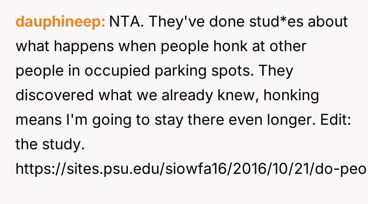 AITA for not leaving my parking spot because someone honked at me?
