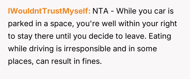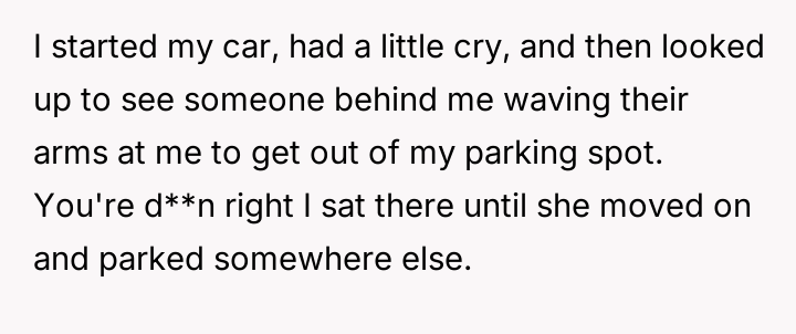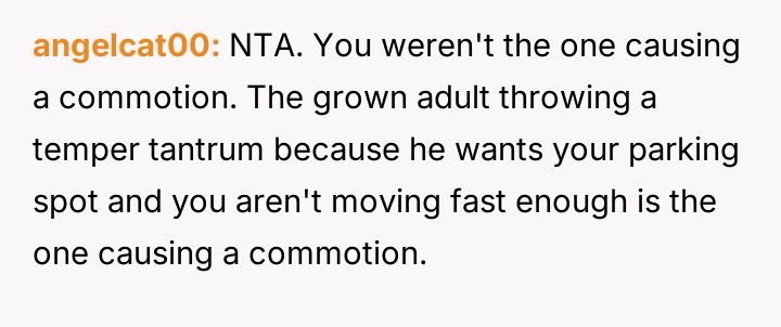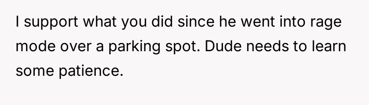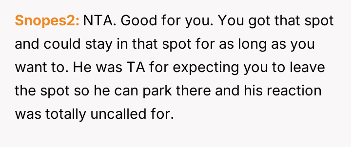 The original poster (OP) felt justified in defending their right to use a legally obtained parking spot, choosing to assert their boundary against aggressive demands from another driver.