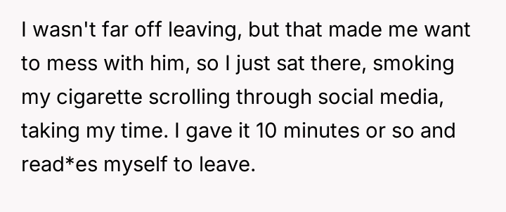 Was the OP correct in refusing to move immediately when confronted aggressively, prioritizing a brief personal act over de-escalation, or should they have yielded the spot instantly to avoid the public scene his reaction provoked? This remains the central question regarding balancing ent*tlement versus social peace.