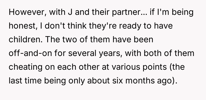 The original poster (OP) is grappling with a conflict between their stated openness to s**rm donation for loved ones and their personal judgment regarding the readiness of one specific couple (J and their partner) to parent.