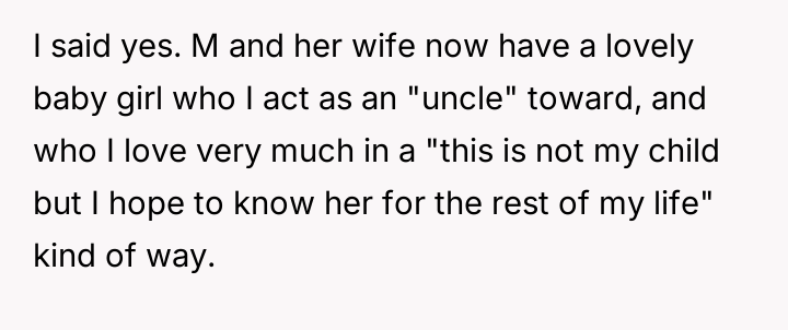 As a gay man who cherishes the q**erness that surrounds him, he found himself honored and emotionally moved when his closest friend M and her wife asked him to help bring their child into the world.