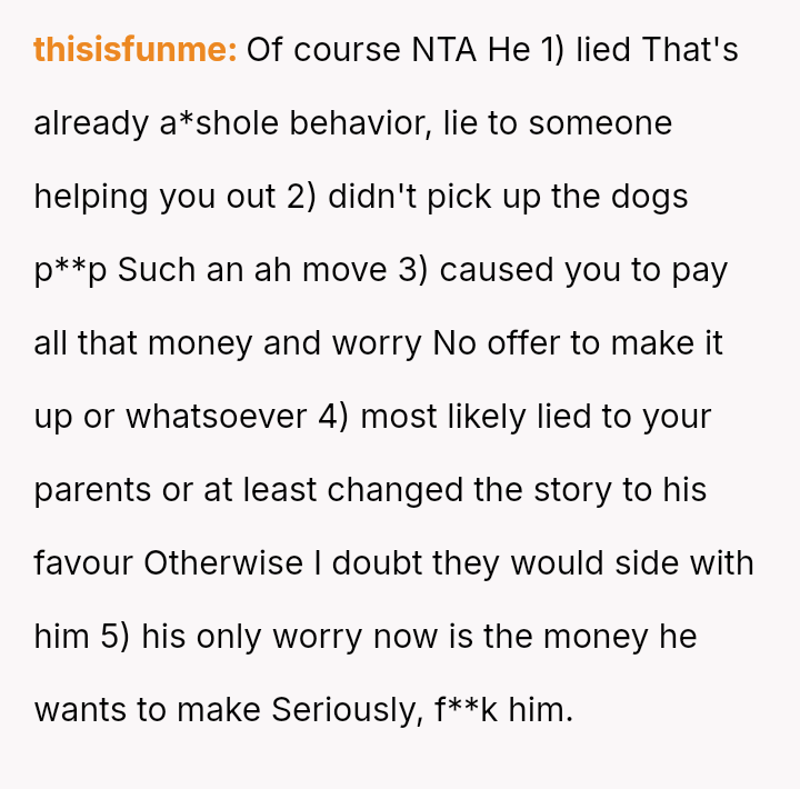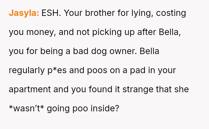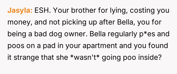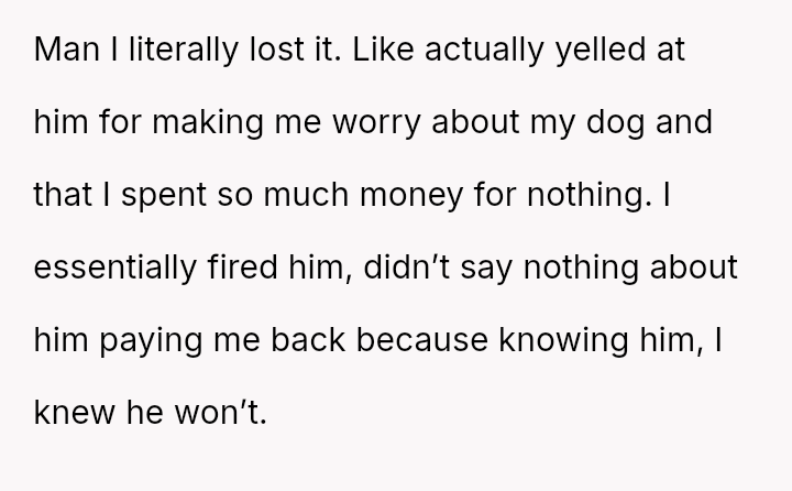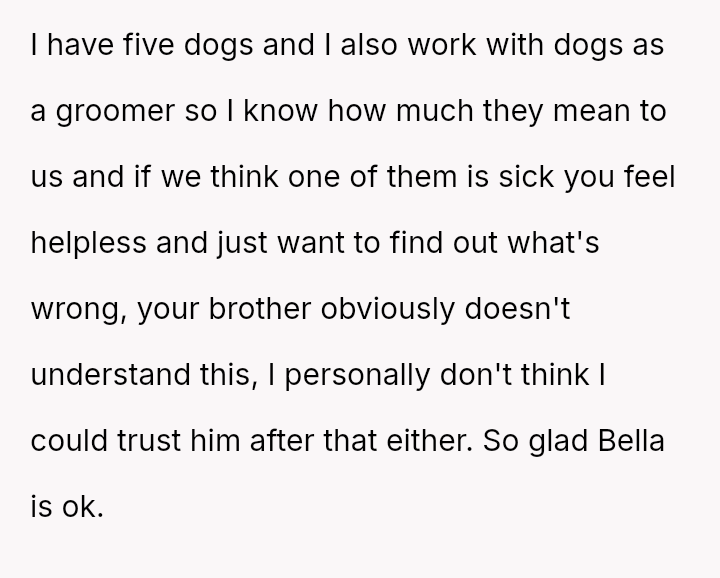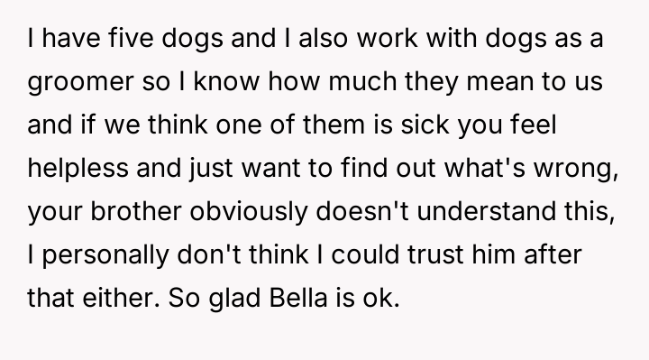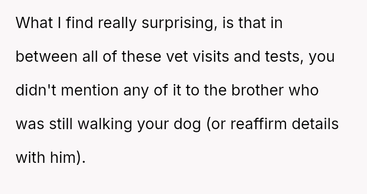 The original poster (OP) is facing a significant conflict stemming from a breach of trust involving their dog's care and unnecessary financial expense caused by the brother's dishonesty.