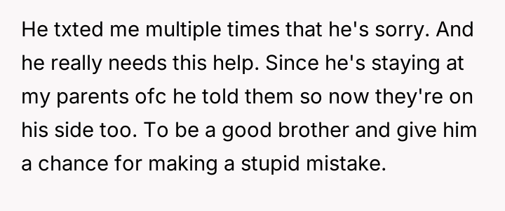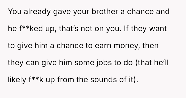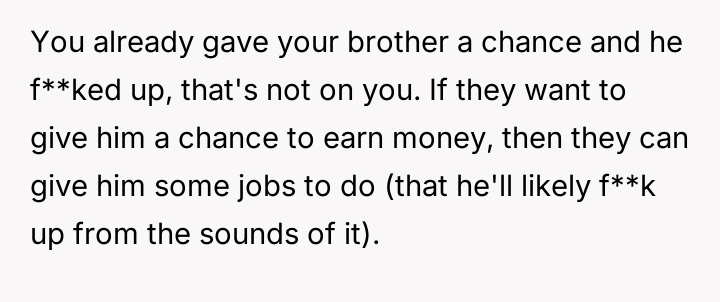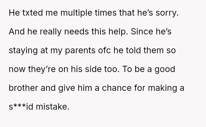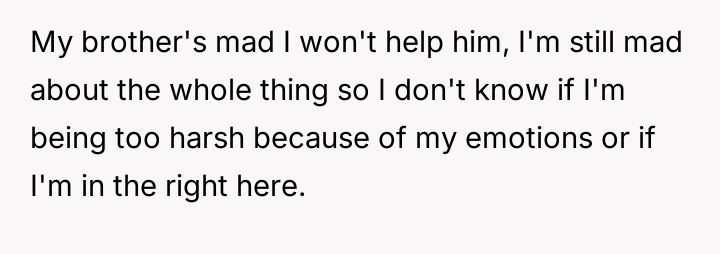 The OP acted out of kindness by offering employment, but the brother v***ated that trust by lying about essential responsibilities, leading to the OP's extreme worry and medical bills.