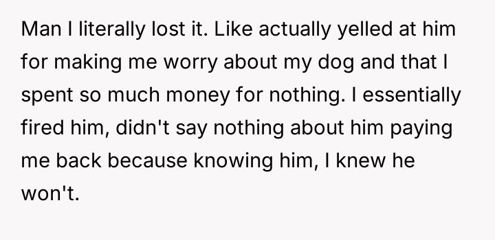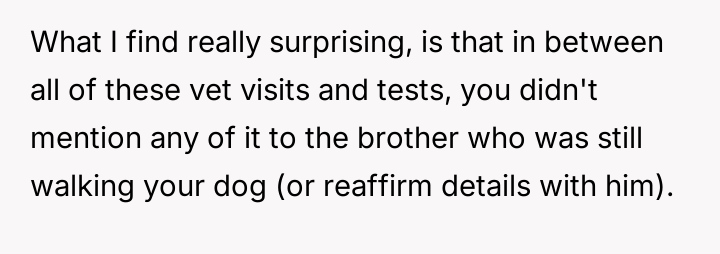 AITA for firing my brother as my dog walker after having to pay a lot for the vet because of his lie?