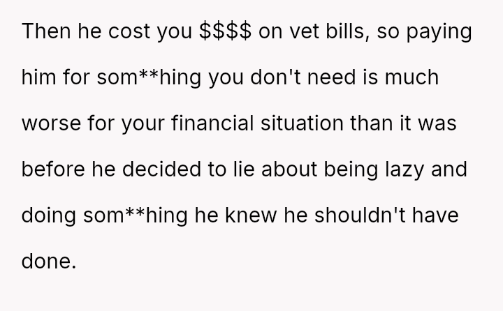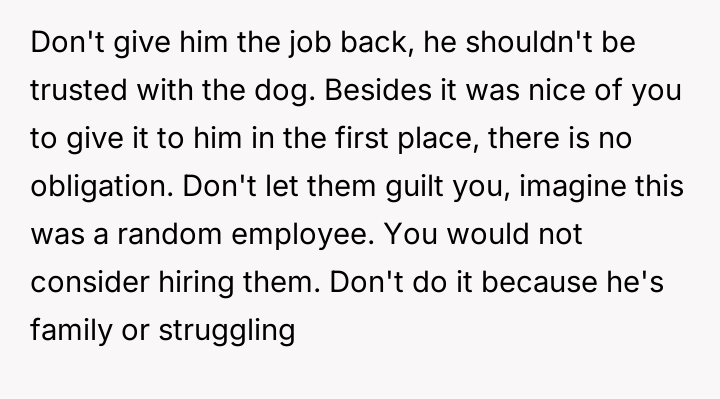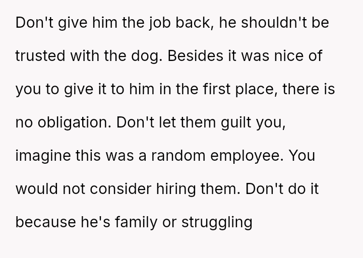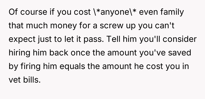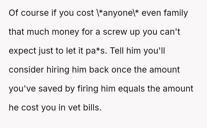 Given the deceit regarding pet care and the resulting financial strain and emotional distress, is the OP overreacting by terminating the employment immediately, or is the brother's deception severe enough to warrant an immediate dismissal without further chances?