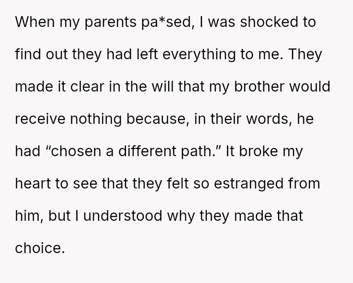 Her parents’ sudden pa*sing revealed not just inheritance, but a chasm of silence and estrangement that had grown between her and her brother, a divide marked by years of rejection and unresolved pain.
