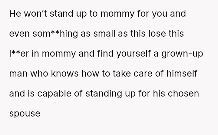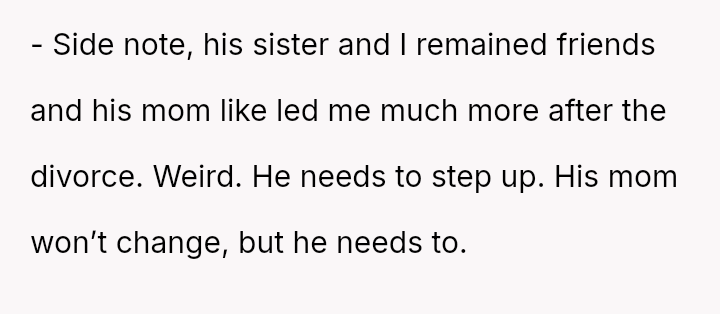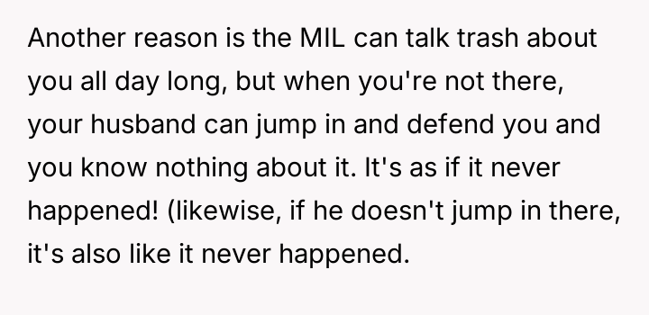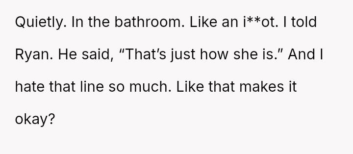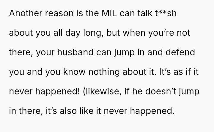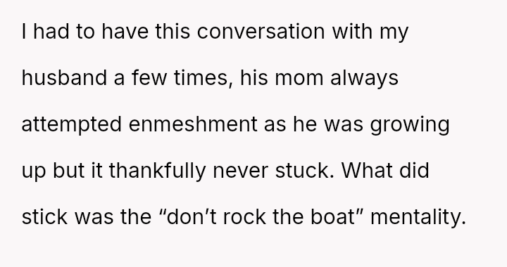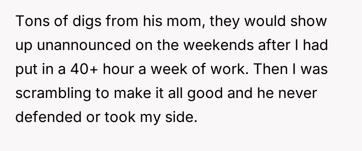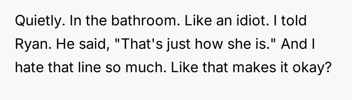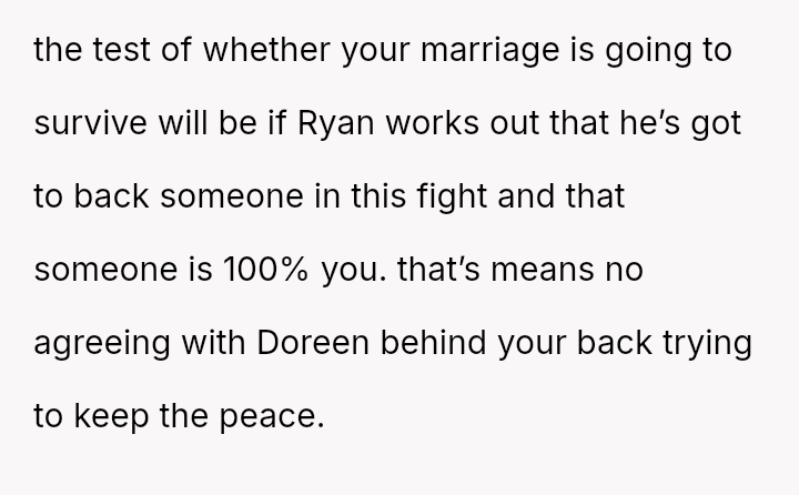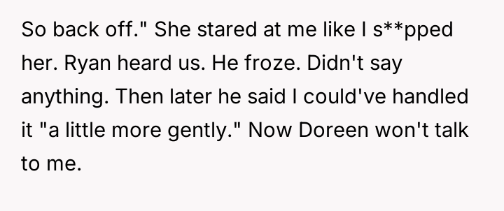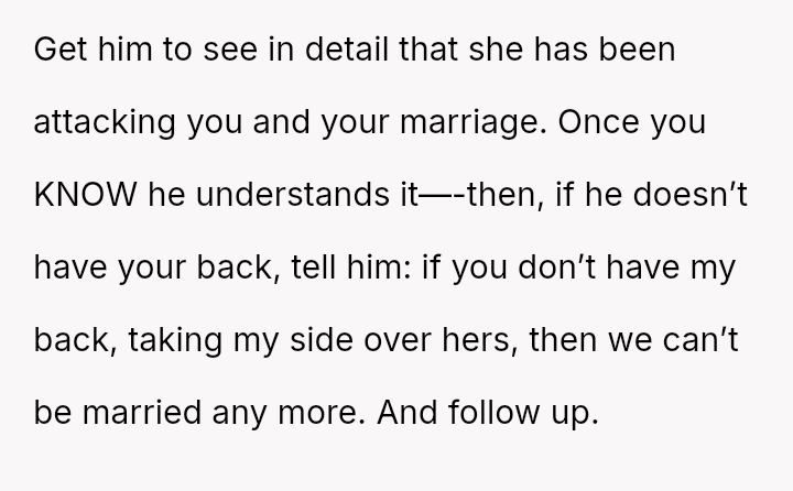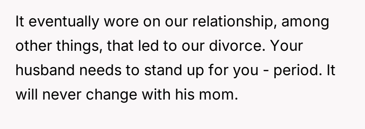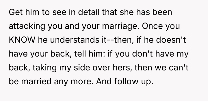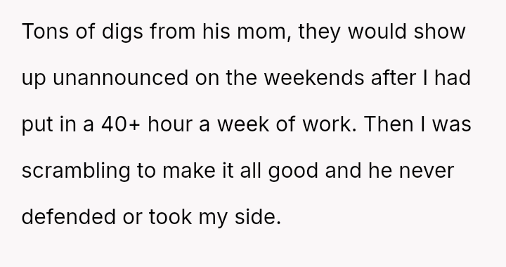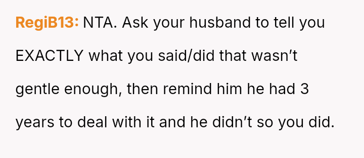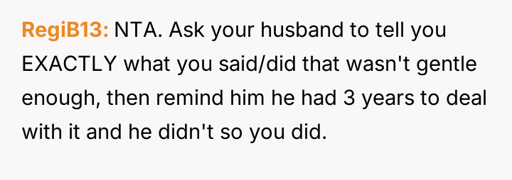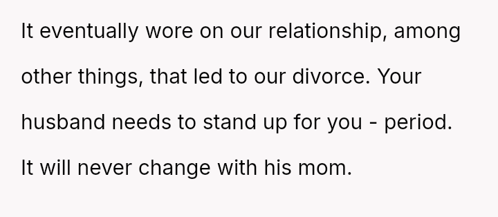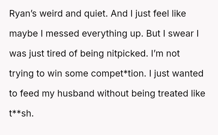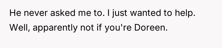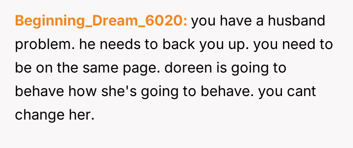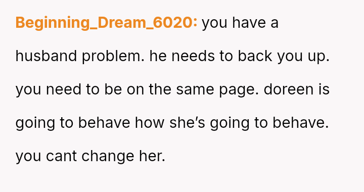 Her husband's neutral response did not immediately support her, creating distance between the couple.