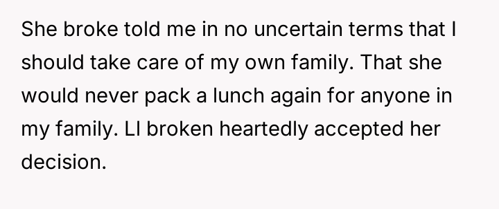 What began as quiet support turned into a battleground for approval, where every sandwich packed was a challenge, every note questioned.