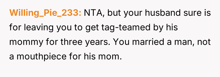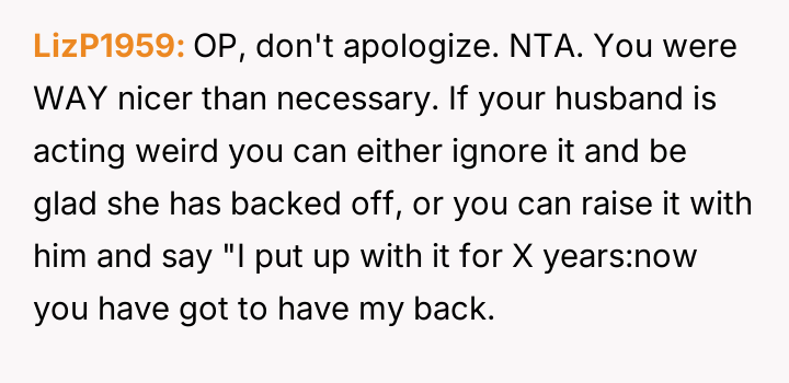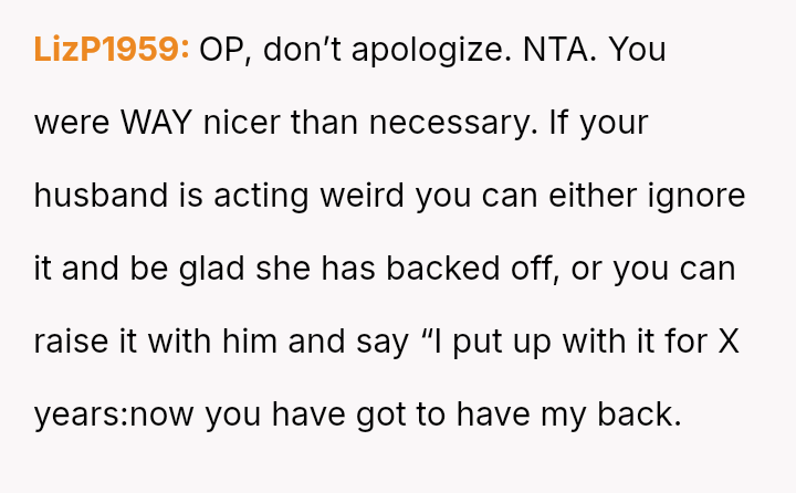 Was the OP justified in confronting her mother-in-law directly when feeling repeatedly disrespected, even if it caused immediate friction with her husband and mother-in-law, or should she have relied solely on her husband to manage his parent’s interference to maintain marital peace?