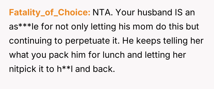 AITAH for finally telling my mother in law to back off after years of criticizing everything I pack for my husband?