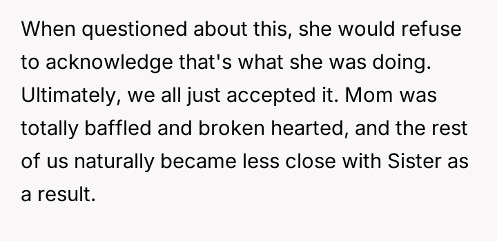 AITA for telling my sister it's her own fault she's alienated from the family?