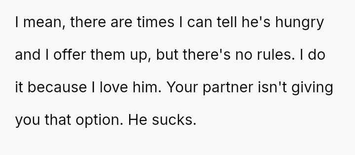 She clings to the comfort of saving her food, a habit born from years of scarcity and compet*tion, while he, raised in abundance and generosity, sees her refusal as a cold barrier between them.