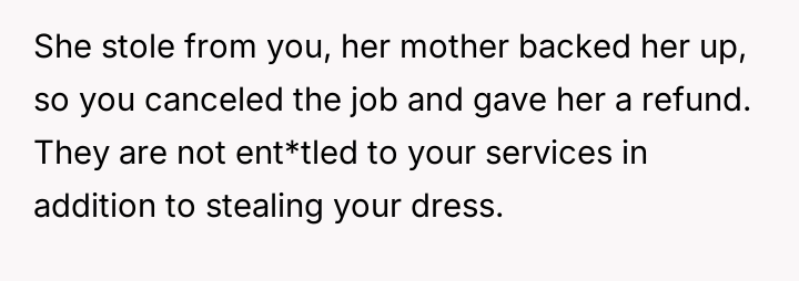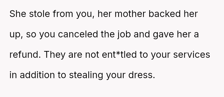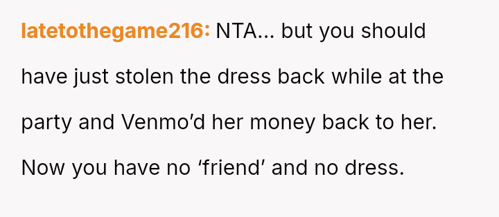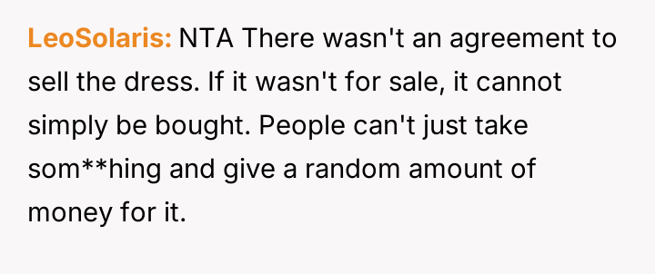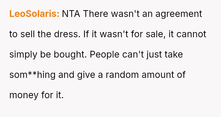 Is the OP justified in demanding the return of the dress, even after accepting payment, or did accepting the money finalize the transaction, making their subsequent actions disproportionate to the offense of losing an item?