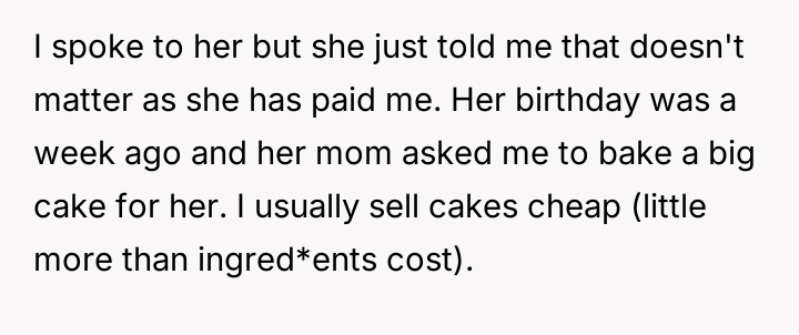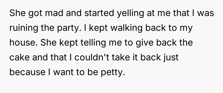 AITA ruining my friend's birthday party by taking back the cake I baked for her?