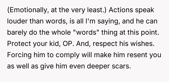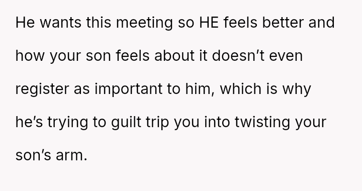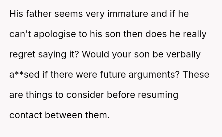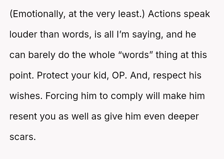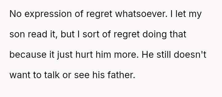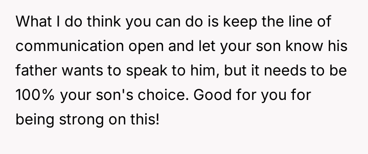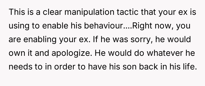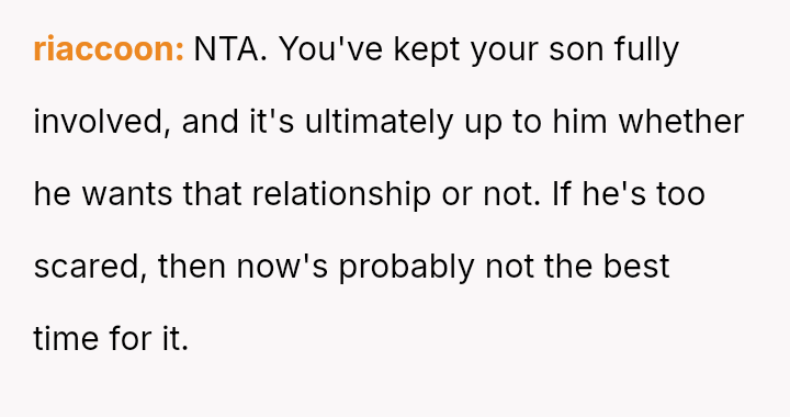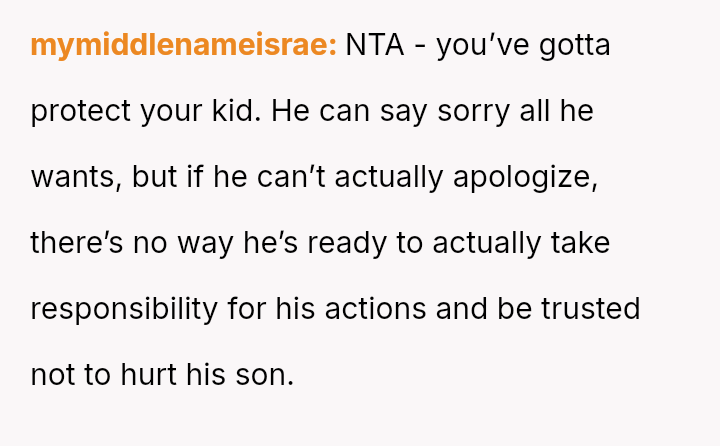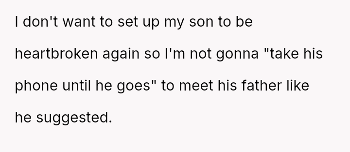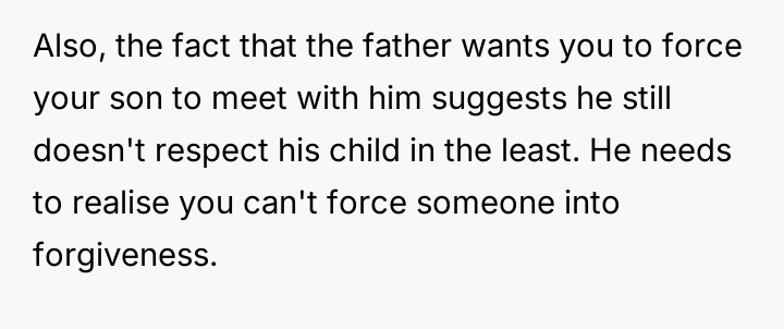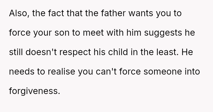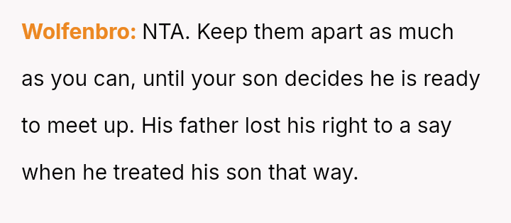 Given that the father has shown no true apology but continues to pressure the OP to deliver the son, should the OP continue to shield their son from contact until the father demonstrates sincere accountability, or does the son's expressed desire to return to normalcy outweigh the immediate risk of renewed emotional pain?