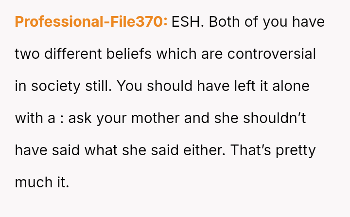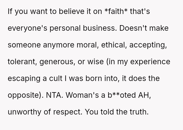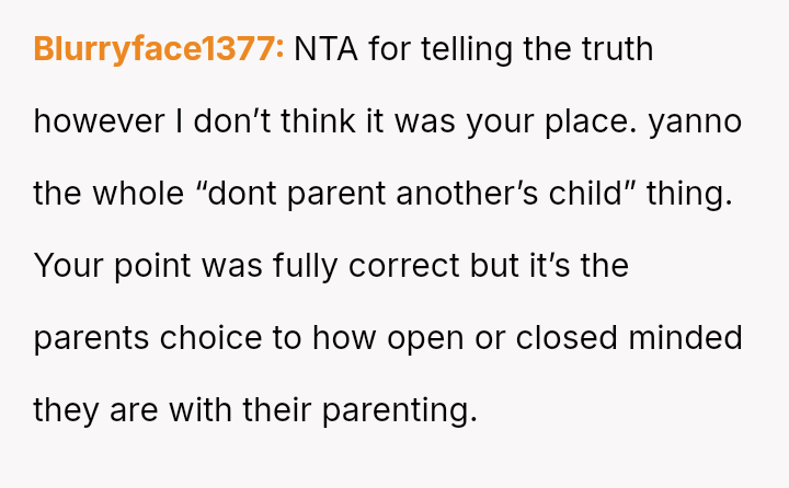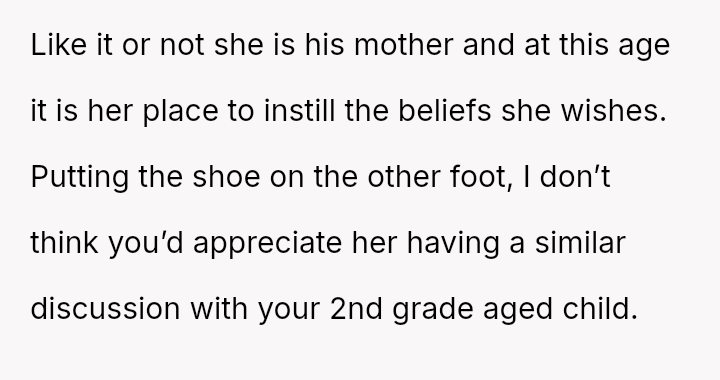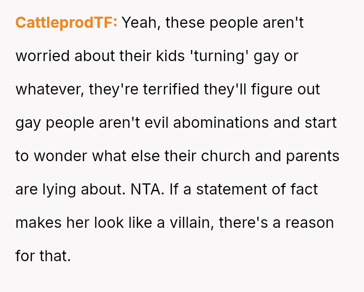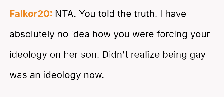 Given the neighbor's stated motivation of shielding her child from what she perceives as an 'unacceptable lifestyle' or 'ideology,' was the OP justified in prioritizing honesty with the child over maintaining neighborly peace, or should the OP have sought a less confrontational m**hod to explain the situation to their son without involving the neighbor's specific prejudices?