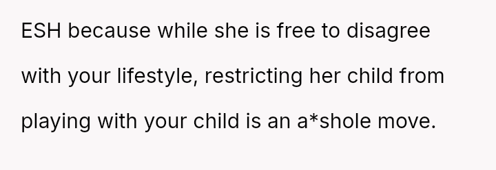 The conflict escalated when the OP chose to answer the child's direct question honestly about why the friendship was stopped, leading to public confrontation with the neighbor regarding labeling prejudice versus protecting religious freedom.