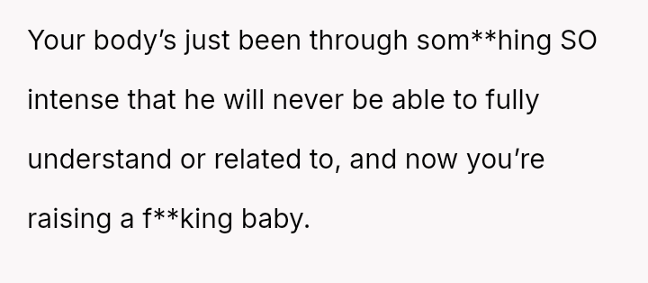 After giving birth, her body was a testament to the life she had brought into the world, yet she faced the harsh weight of feeling unwanted and misunderstood by the one she loved most.
