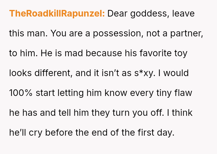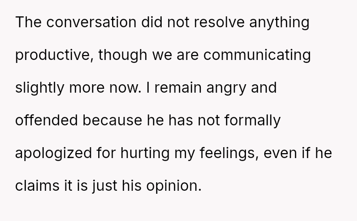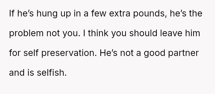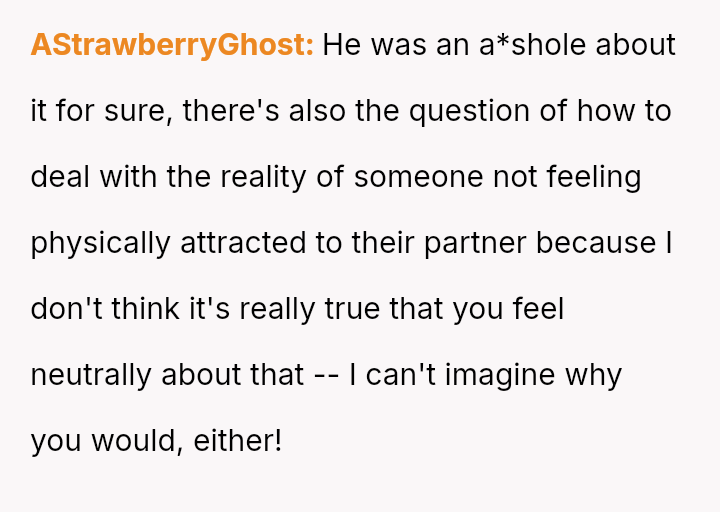 Should the husband prioritize his partner's emotional well-being and offer a sincere apology for causing pain, or is his expression of physical preference a valid boundary that the partner must simply accept without argument?
