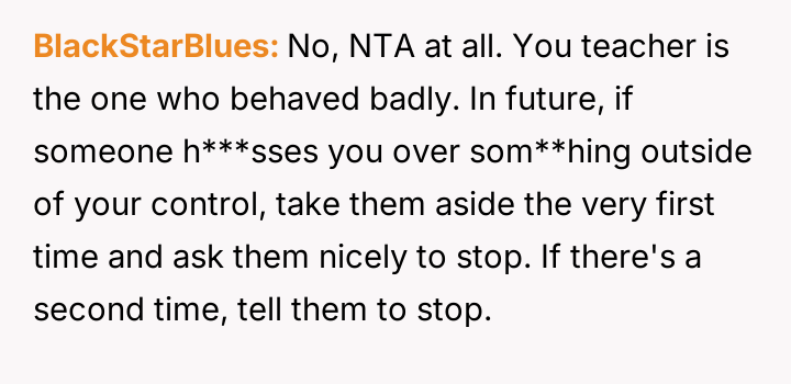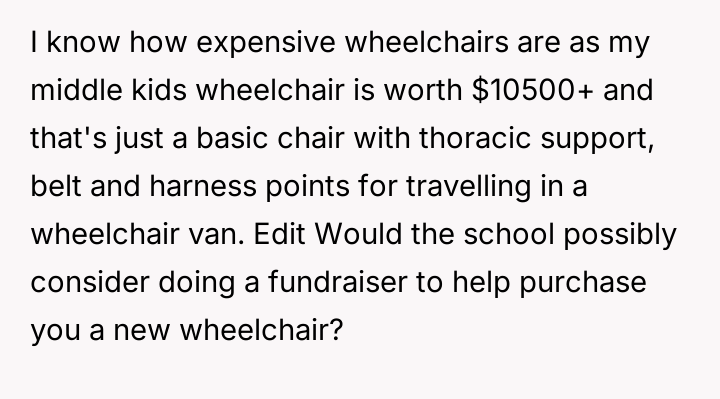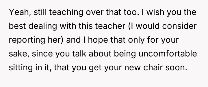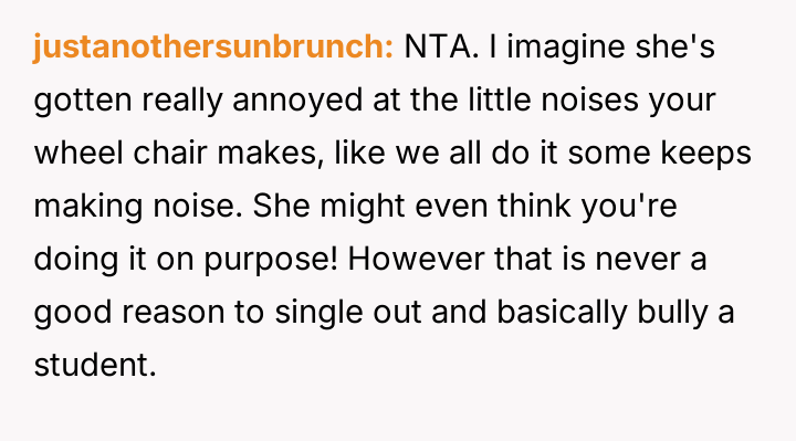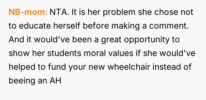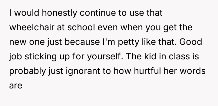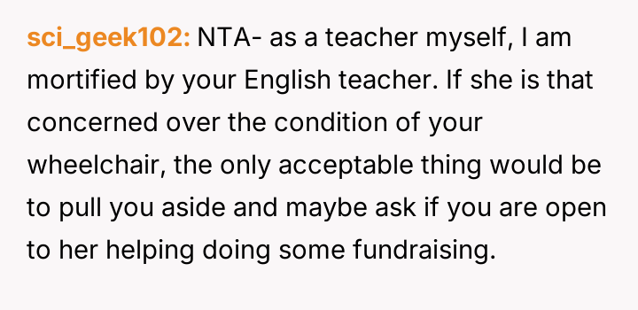AITA for telling the teacher to stop making comments on my wheelchair?