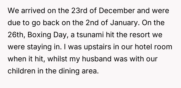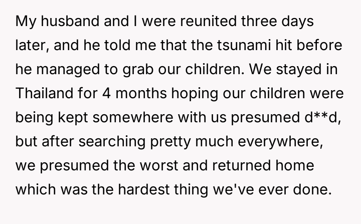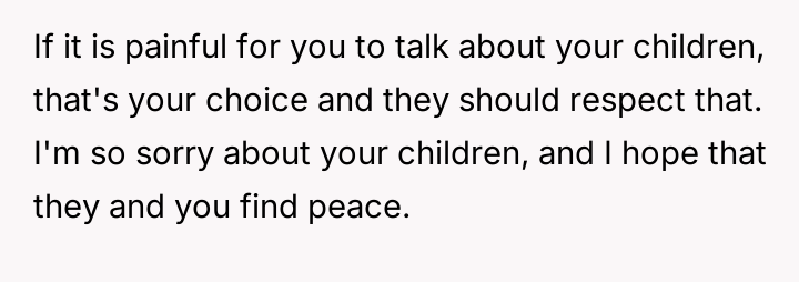 AITA for not wanting to talk about my children that I lost in the 2004 Boxing Day tsunami?
