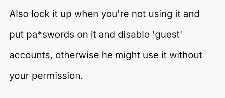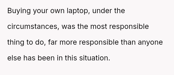 Should the OP be afforded full autonomy over the item they use for essential tasks like schoolwork, or does the parental provider retain ultimate authority to dictate its use, even if that use results in damage or disruption?