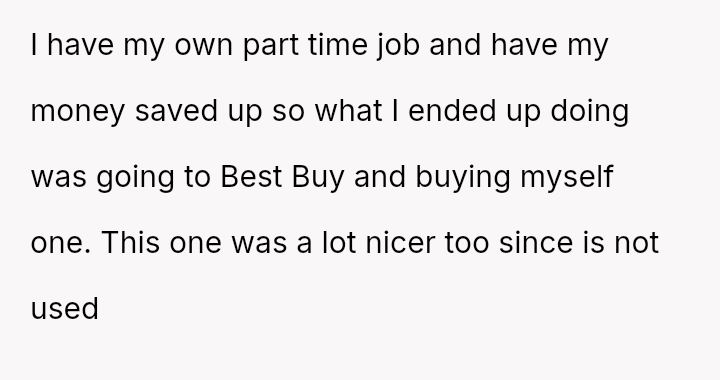 In response to the father's directive to share or purchase their own device, the OP used their earned income to acquire a superior replacement, which has now angered both the father and the stepsibling.