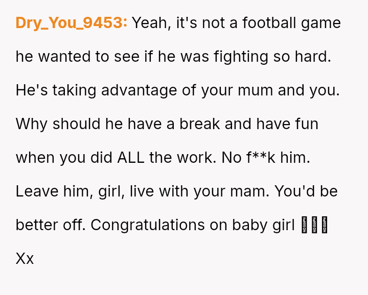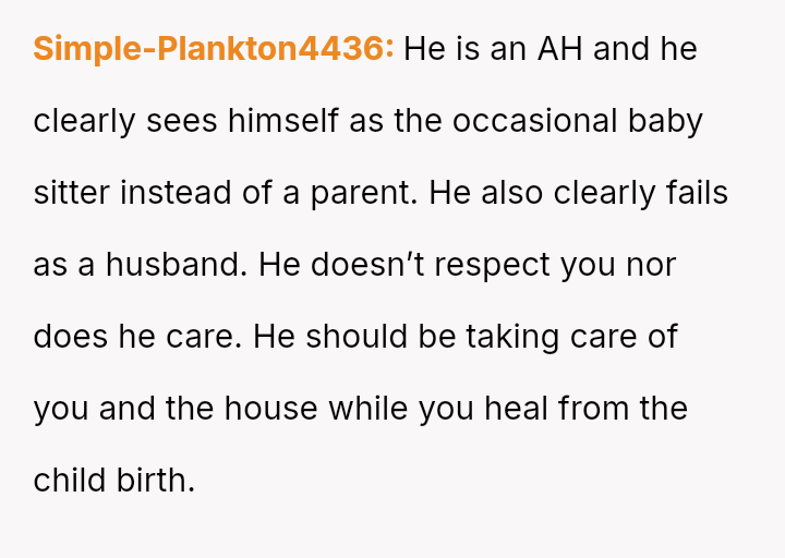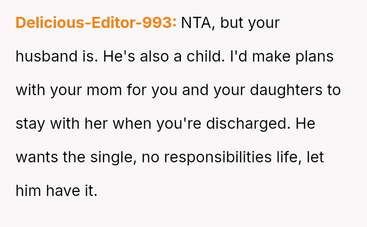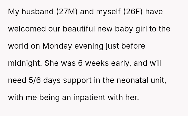 The original poster is deeply hurt and feels abandoned by her husband immediately following the birth of their pr****ure daughter, especially as she remains hospitalized and alone.