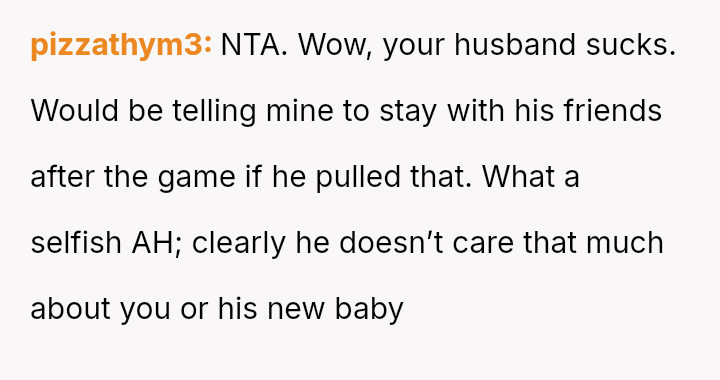 Is the husband's desire to attend a planned social event more important than his immediate presence and emotional support for his wife and newborn during a stressful hospital stay, or is the wife being overly demanding given the temporary childcare arrangements already in place?