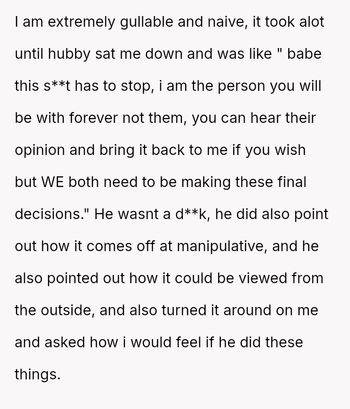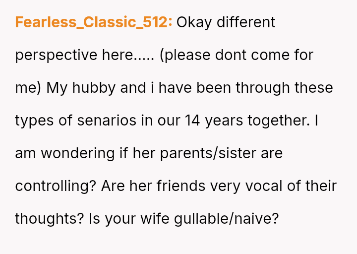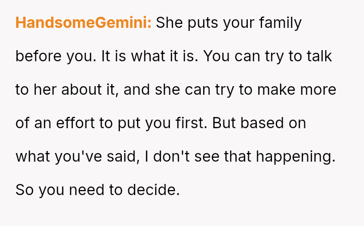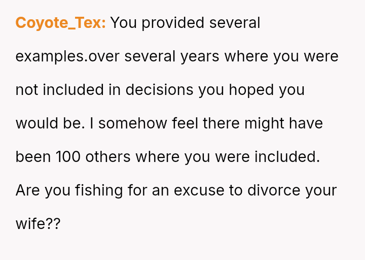 Given the recurring pattern where the wife seems to inform her family before the husband or adopts their viewpoints against shared agreements, is the OP's feeling that his wife prioritizes her family's influence over his partnership role a valid concern deserving of serious marital attention, or are these disagreements minor issues that he is overreacting to, as his wife suggests?