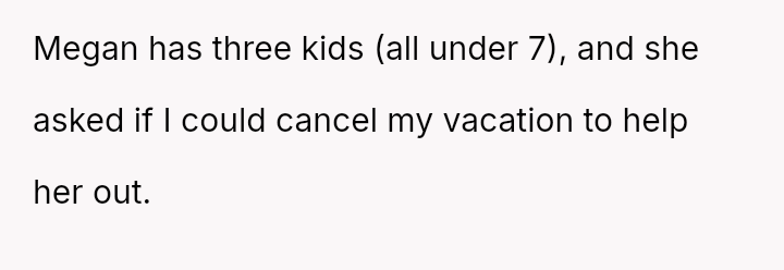 The original poster (OP) is facing a conflict between their deeply needed personal time, planned months in advance, and their sister's urgent, last-minute childcare crisis.