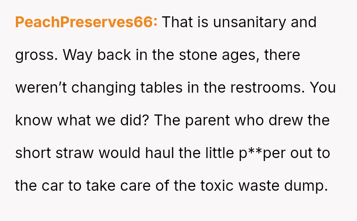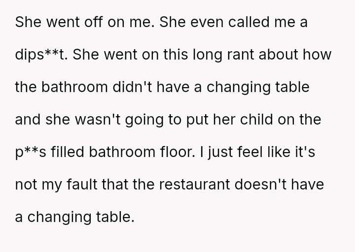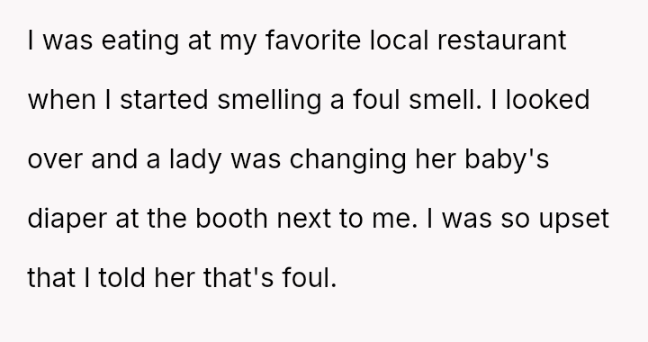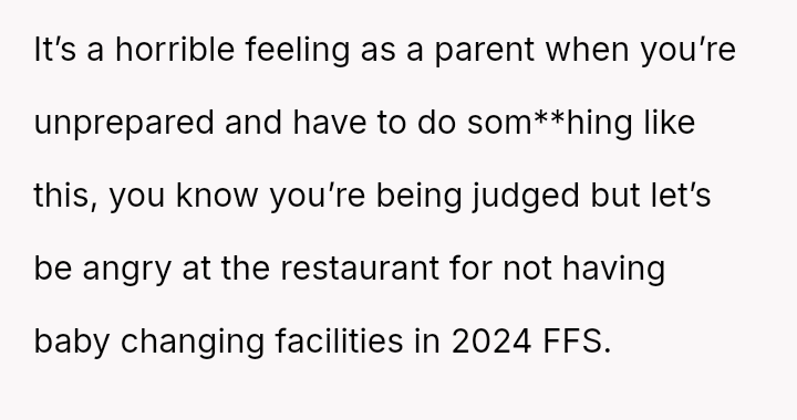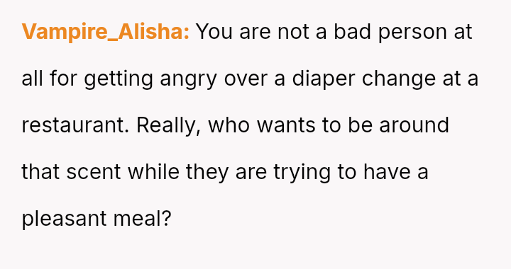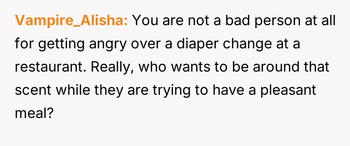 The original poster experienced distress and felt their dining experience was ruined due to an unexpected situation involving a nearby baby changing.