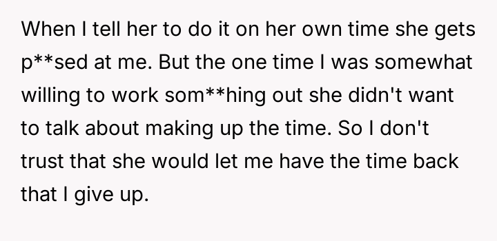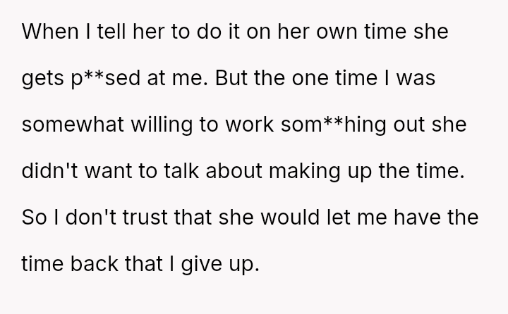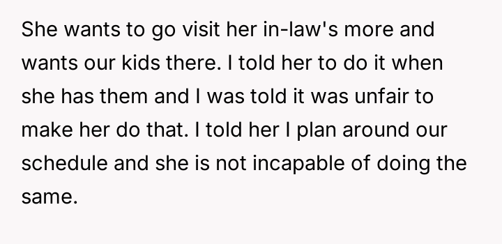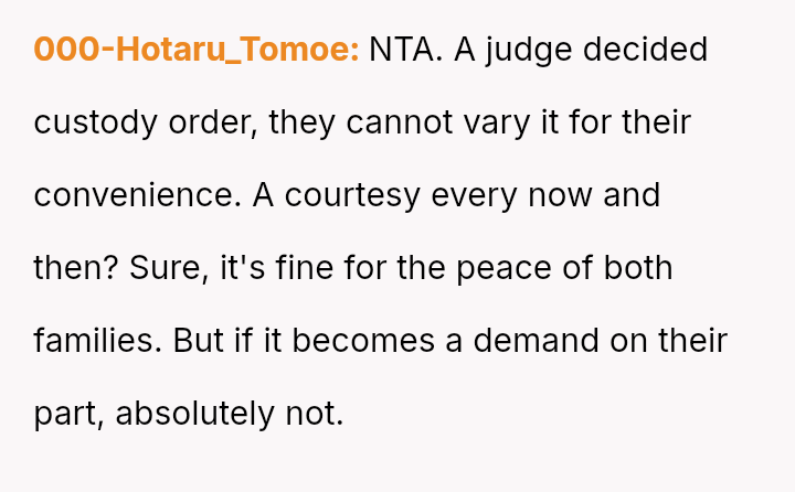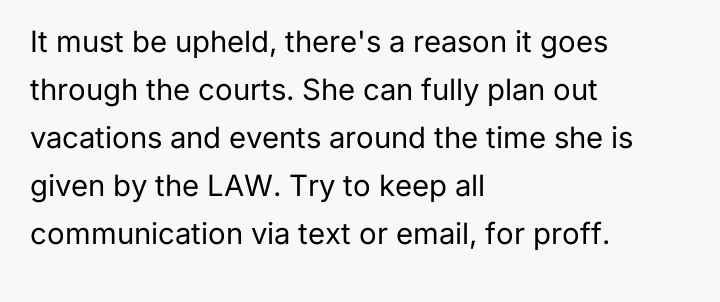 He feels he is being forced to choose between maintaining the legal agreement designed to protect his time and facing personal attacks for prioritizing the court order over spontaneous family events.