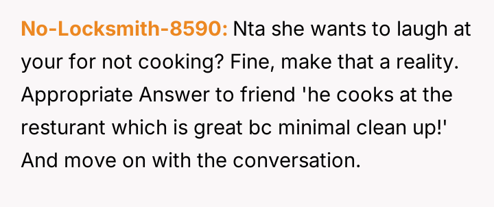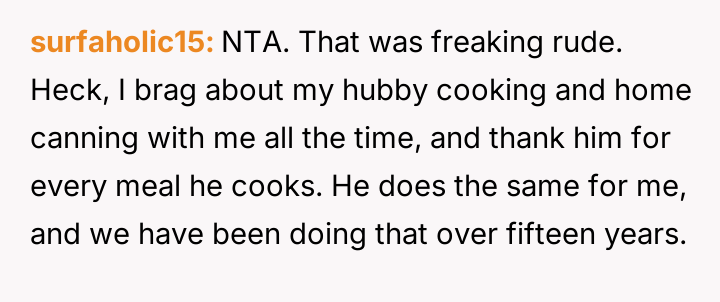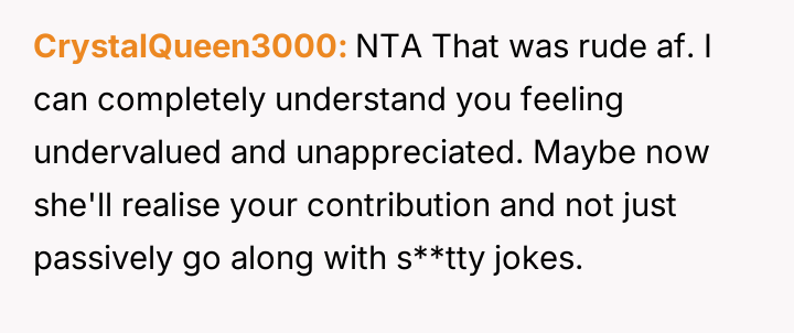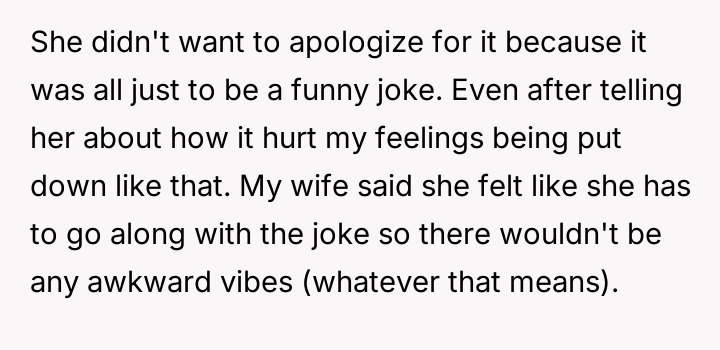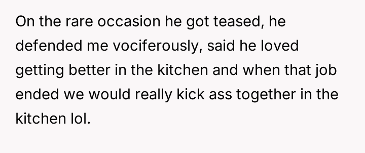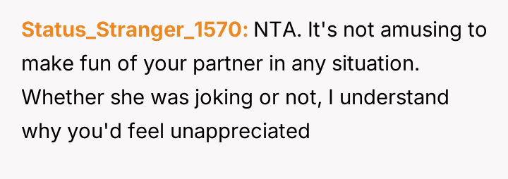 The original poster (OP) feels deeply hurt and unappreciated after his wife participated in a social gathering where he was publicly mocked for not contributing to home cooking, despite his significant efforts in his professional and domestic roles.