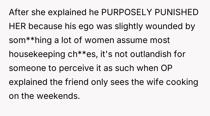 Is the OP justified in halting his domestic labor as a response to being publicly disrespected and having his contributions minimized by his wife and her friend, or should he have accepted the comments as harmless teasing and prioritized his wife's need for shared domestic relief over asserting his boundary?