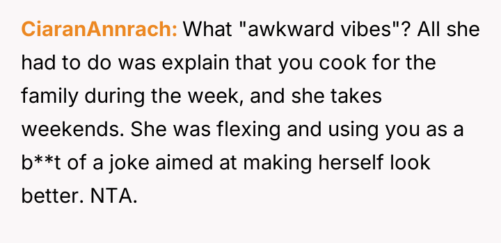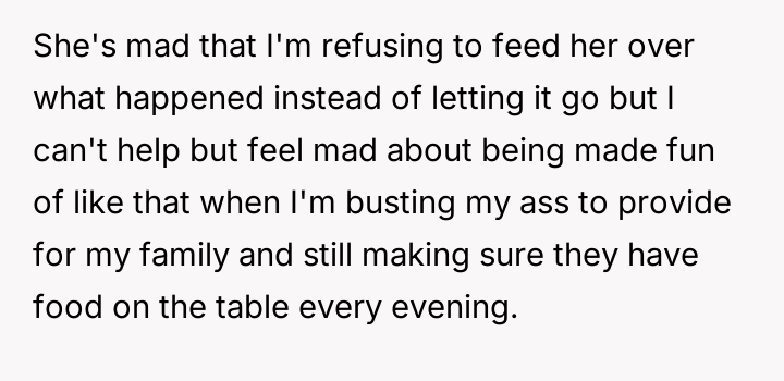 The central conflict arises because the OP retaliated by ceasing to cook dinner for his wife, viewing this as a necessary boundary against disrespect, while his wife perceives his action as an unfair punishment that ignores her own fatigue.