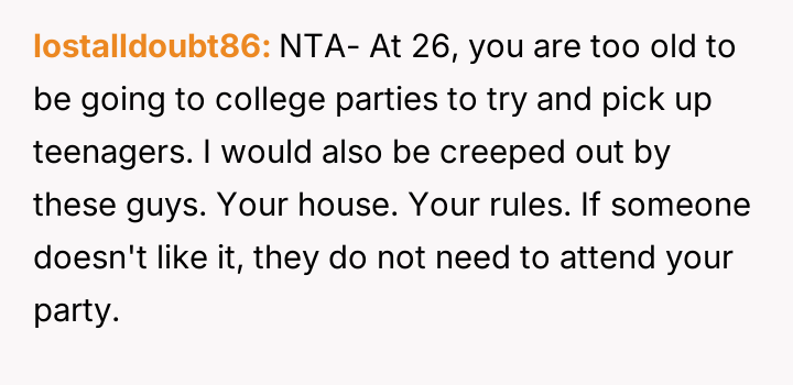 AITA for publicly telling this guy "This is a COLLEGE party. You are 26" and kicking him out of my party?
