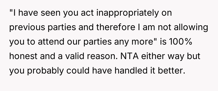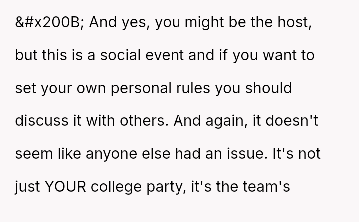By setting clear boundaries and rules for the party hosted at their rented house, the OP attempted to create a more age-appropriate social environment for current students and team members.