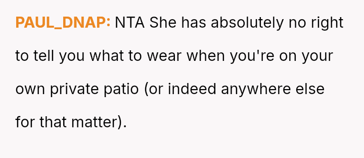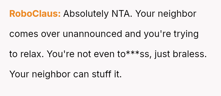 The original poster experienced significant distress due to a neighbor's invasive behavior, which included p*ering over a private fence and offering unso***ited, judgmental comments about her attire while she was heavily pr****nt and resting.