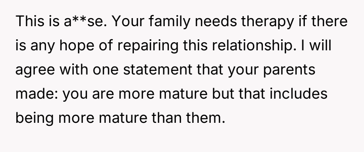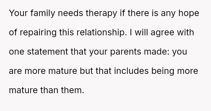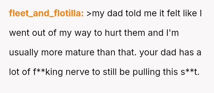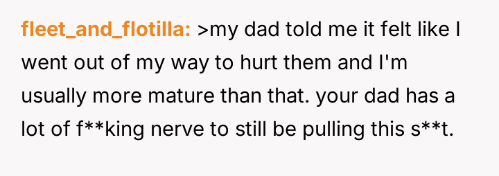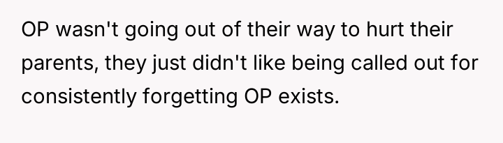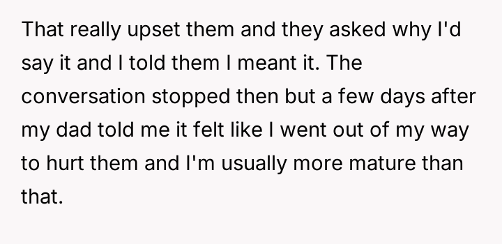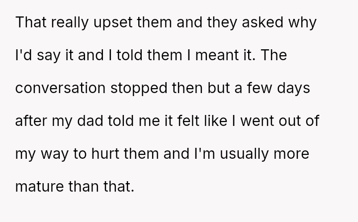 The parents' response frames the OP's outburst as an unnecessary attempt to inflict pain, focusing on their own hurt rather than the underlying reasons for his distress.