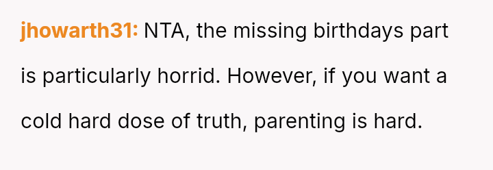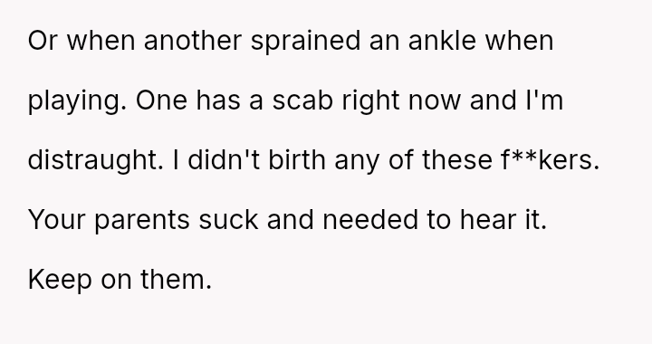 The core question remains whether the OP's extreme statement was a justified, albeit harsh, expression of years of neglect, or an unfair attack against parents who claim they are simply overwhelmed.