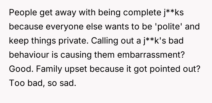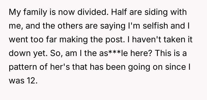 The resulting conflict has caused division within the family following the OP's public social media call-out.