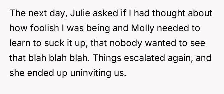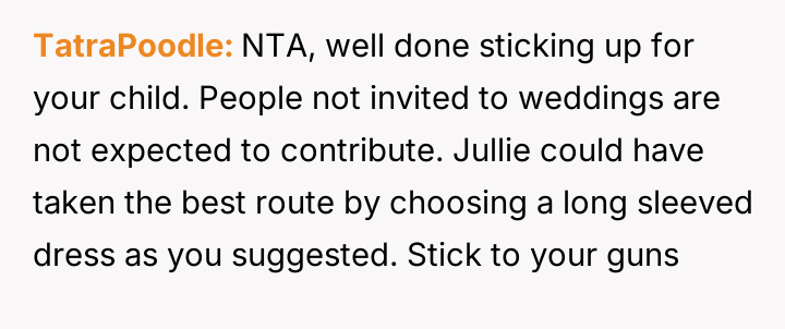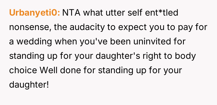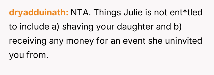 When the OP defended his daughter's sensory needs and refusal to shave, Julie reacted by rescinding the wedding invitation, which the OP then used as justification to withdraw his promised financial contribution.