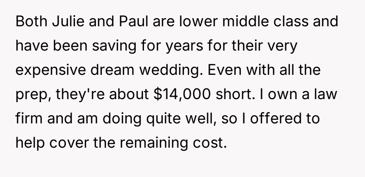 The original poster (OP) found himself in a major conflict after offering financial support for his sister's wedding.