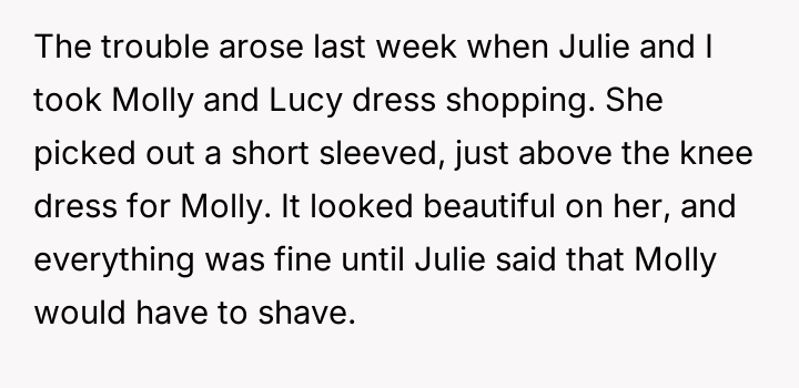 The central disagreement involved his autistic daughter, Molly, and a demand from the sister (Julie) that Molly shave her legs for the event.