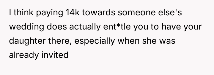 The core debate centers on whether the OP was justified in withdrawing funding due to the uninvitation, or if he should have honored his financial commitment regardless of the family fallout.